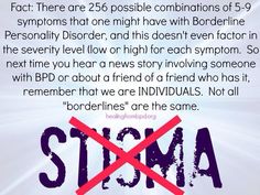 […]It is called borderline because it was originally thought that people were on the ‘border’ of psychosis and neurosis. BPD is also sometimes called Emotionally Unstable Personality Disorder (Borderline type). Approximately 75% of people given this diagnosis are women and 50% have experienced physical and/or sexual abuse.
