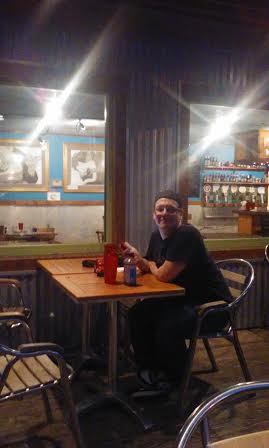 We finally were hungry, and decided to eat at one of the little eateries, a Tex-Mex and seafood establishment called, of all things, The Lucky Otter (which is the restaurant that inspired the name of this blog). I mean, I just had to eat there, having named my blog after it. I even got a picture of the sign!